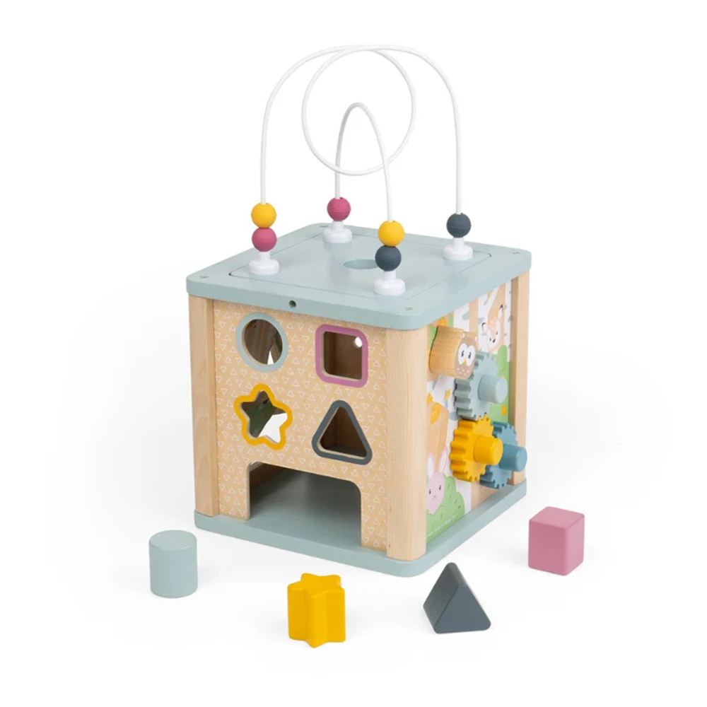 Deze mooi afgewerkte activiteiten kubus heeft een afneembare bovenkant. Plaats de bovenkant omgedraaid op de kubus en hij kan handig opgeborgen worden.
