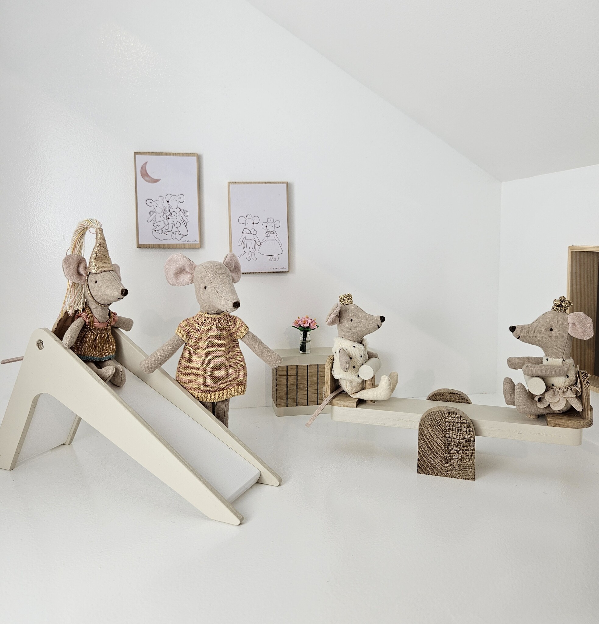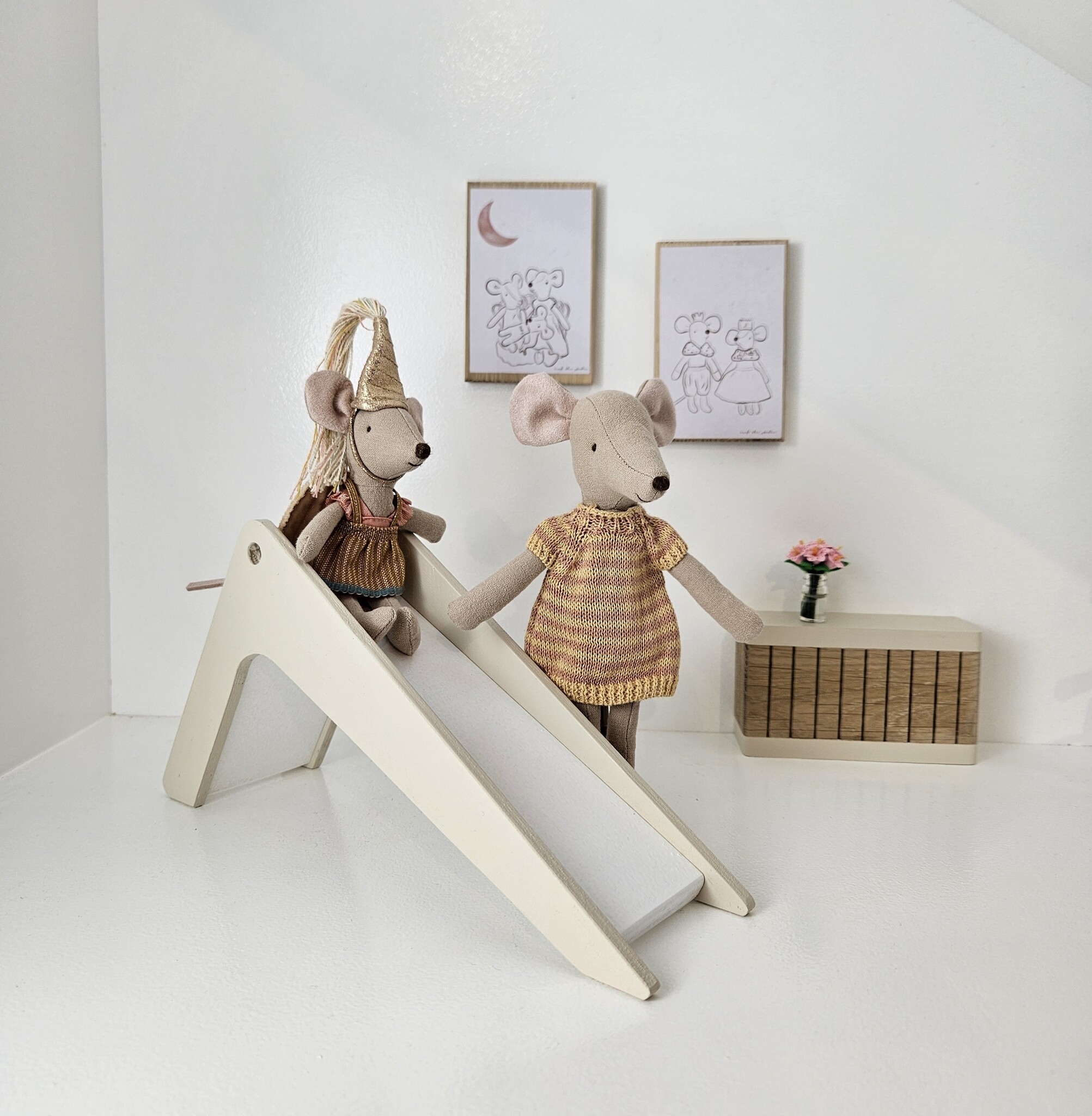 Lekker spelen in je poppenhuis. Deze met de hand gemaakte glijbaan vinden je Maileg muisjes reuze gezellig! Het beukenhout kan gekozen worden in verschillende kleurtjes. Leuk om te combineren met onze wipwap. Lees meer