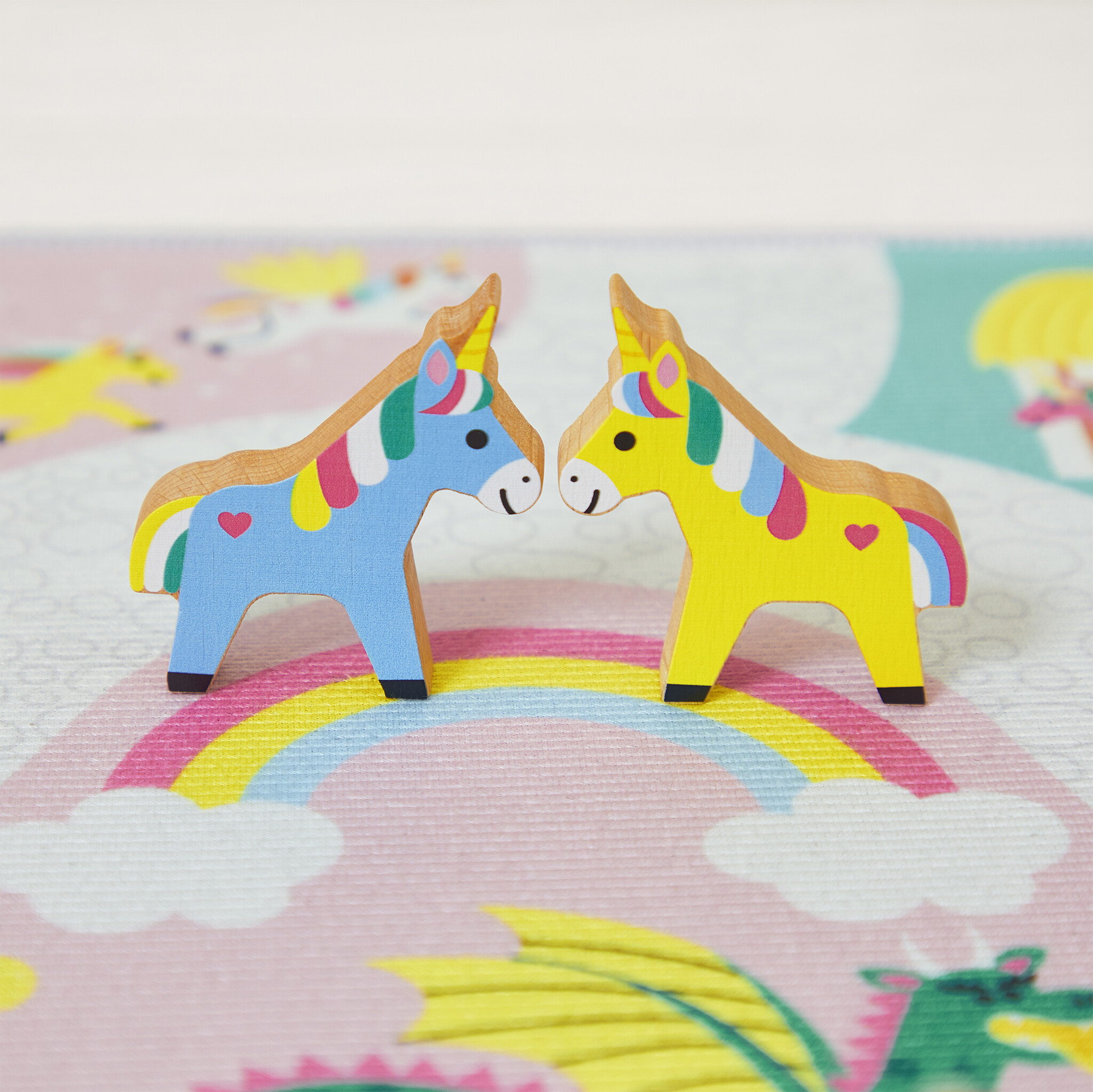 Deze blokken set maakt de speelmat het betoverde koninkrijk nog leuker! De set bestaat uit 37 houten stukken namelijk 29 bouwblokken, 4 leuke poppetjes en 4 mooie eenhoorns. De set wordt geleverd in een handige opbergdoos. Lees meer