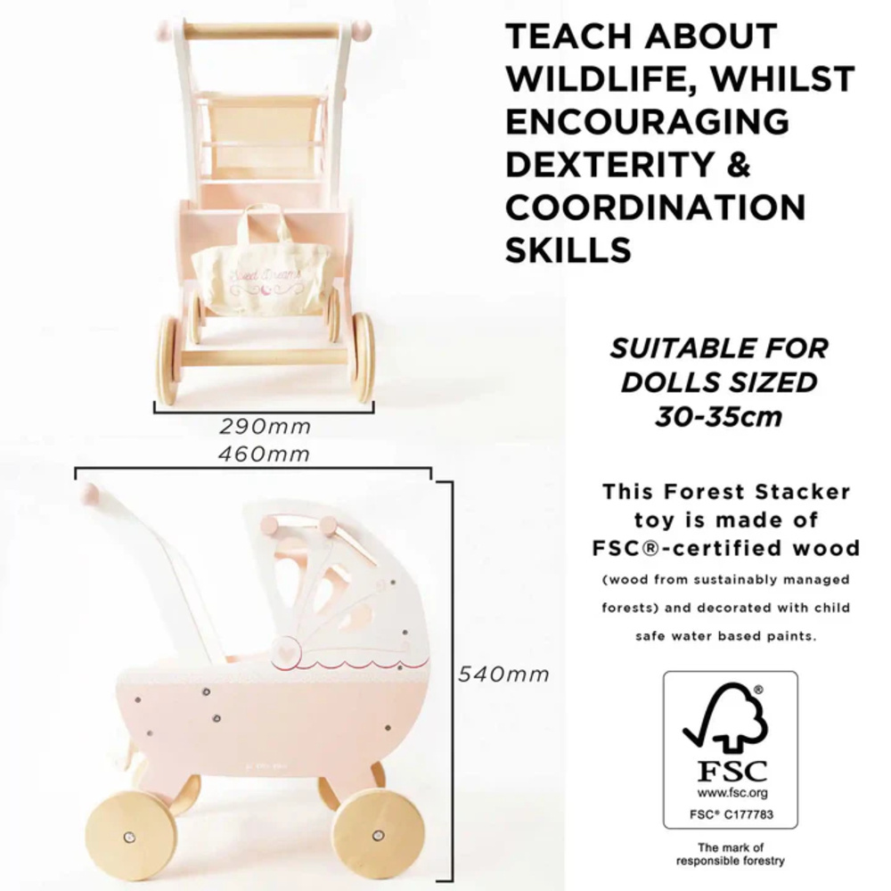 Heerlijk uit wandelen met je pop met deze prachtige poppenwagen Sweet Dreams van Le Toy Van. Deze stevige traditionele houten poppenwagen is afgelakt in zacht roze en wit. Is het geen plaatje om te zien? Lees meer