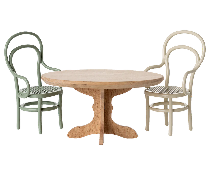 Deze mooie vintage stoel is gemaakt van metaal en speciaal ontworpen voor de muisjes van Maileg. Deze off white stoel is 8,5 cm hoog en past goed bij de Maileg houten eettafel Lees meer