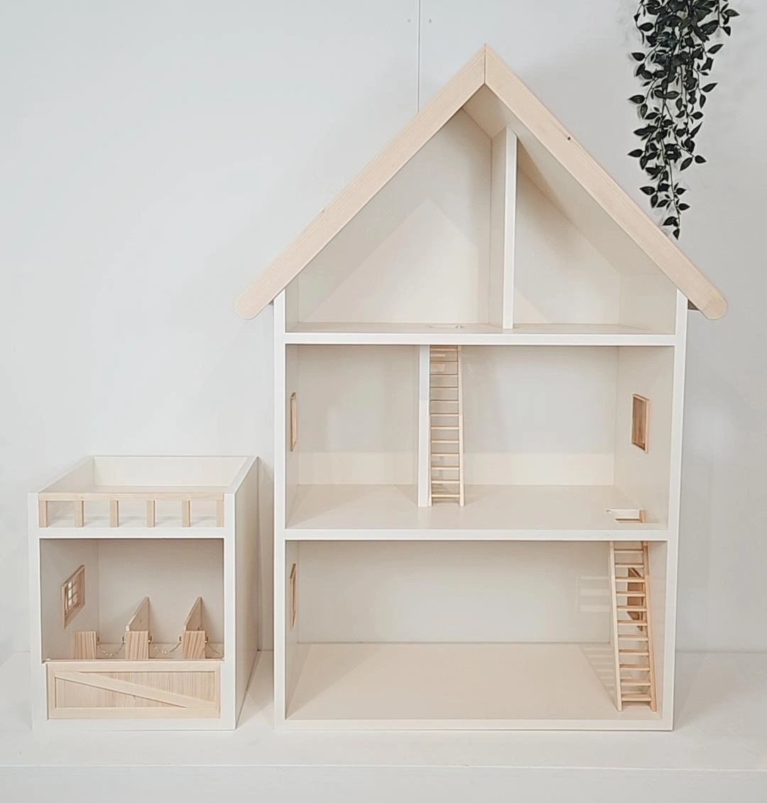 Dit prachtige met de hand gebouwde poppenhuis, bevat 3 verdiepingen verbonden met houten trappen. Een prachtig poppenhuis geschikt voor allerlei soorten meubels en poppetjes waaronder de muisjes van Maileg. Lees meer
