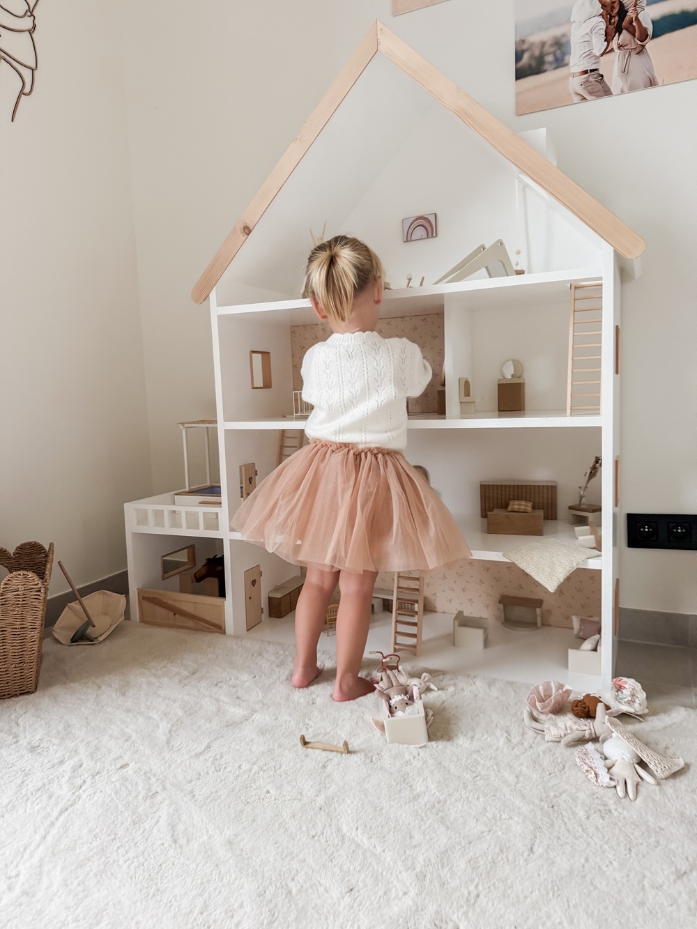 Dit handgemaakte poppenhuis bevat maar liefst 4 verdiepingen en een aanbouw en biedt een zee aan ruimte voor poppetjes of Maileg muisjes. Breidt het poppenhuis uit naar wens door opties toe te voegen. Op de foto zie je het huis met alle opties toegevoegd. Lees meer